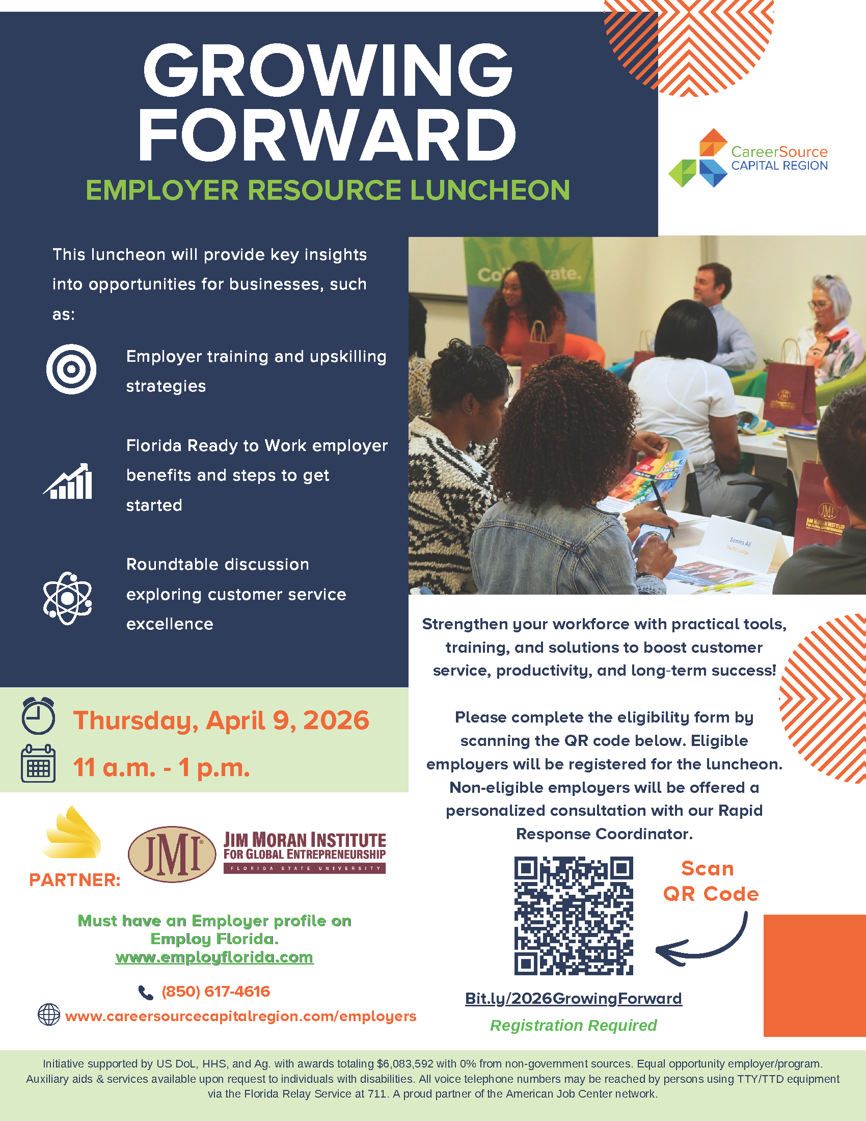 Join CareerSource Capital Region for the Growing Forward Employer Resource Luncheon!